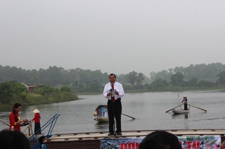 Comme dans les marchés flottants dans le Delta du Mékong, sur chaque bateau, le produit en vente est accroché au sommet d'une perche à bord du bateau. Le client n'a qu'à regarder le sommet de la perche et ils pourront savoir si le vendeur a les produits qu'ils désirent. A cette occasion, il y avait aussi des rameurs qui sont venus du Sud pour vous servir. Un rameur a dit : Vendre et chanter sur la rivière, c'est une spécialité de chez moi. Dans un marché flottant, on vend et on achète, bien sur, mais on communique aussi par le chant. Je suis fière de pouvoir présenter cette tradition de Can Tho".