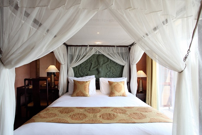 Le Jayavarman est une grande cabine de 27m2 comprenant un balcon de 3m2. Cette cabine est dédiée à la culture khmère. L'installation la plus étonnante est le bois massif et le lit king size baldaquin avec ses gravures de couleur gypse impressionnantes sur la tête de lit, affichant une danseuse Apsara.