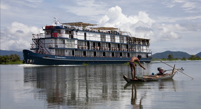 Le RV Jayavarman est un bateau de luxe qui propose des croisières entre 4 et 8 jours du Vietnam au Cambodge et vice versa.