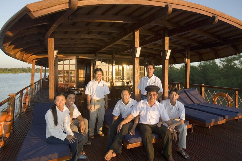 • Rembarquement, verre d'accueil au retour à bord. Repos sur le pont pour le coucher du Soleil. L'équipage sert le dîner alors que la Bassac est en route sur Mang Thít.