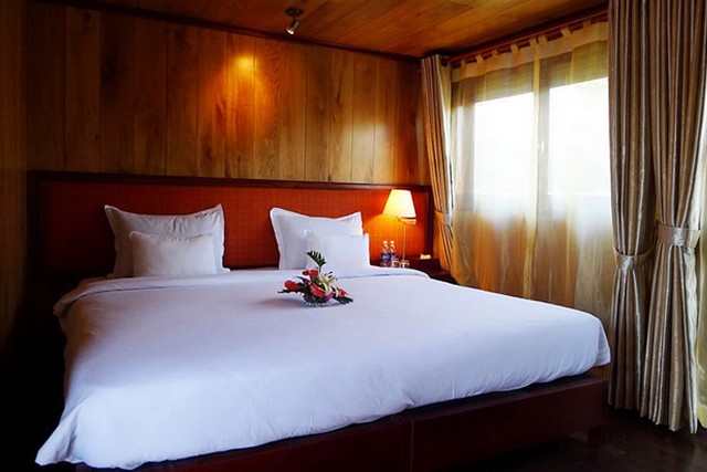 Le bateau Gecko Eyes est l'un des bateaux les plus splendide voguant sur les eaux du delta du Mékong. Il dispose d'une grande cabine de luxe, d'un balcon avec terrasse, l'air conditionné, d'une salle de bain privée et d'un salon. Pour accueuillir des familles de 3-4 personnes, le salon peut être transformé en une autre chambre à coucher supplémentaire.