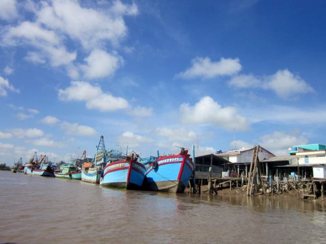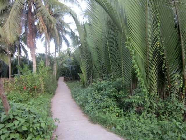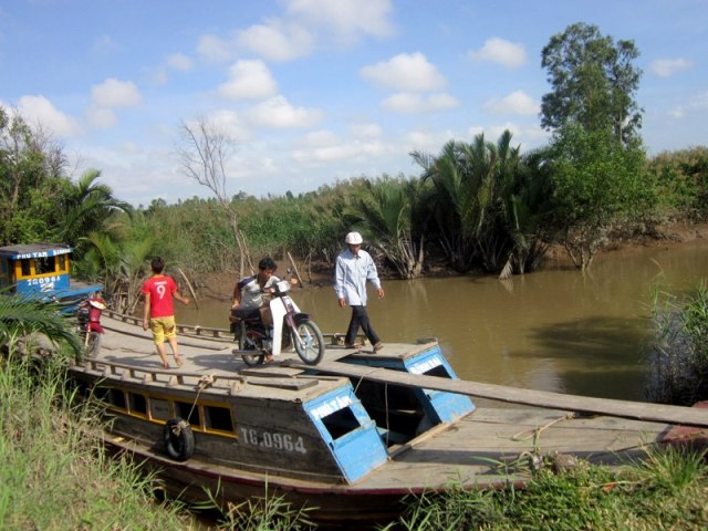 Pour entrer dans le village, vous traverserez des champs de riz et des rangs de palmiers à sucre. Transfert ensuite vers Chau Doc pour passer la nuit.