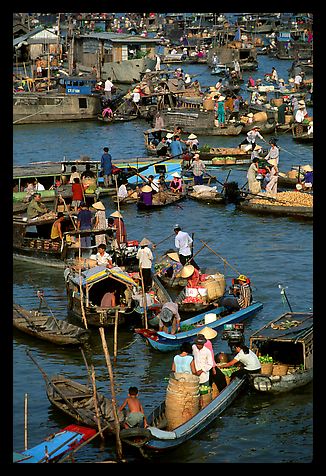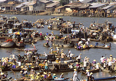- Visite en bateau du marché flottant de Cai Rang pour observer l’animation de la vie du delta. Spectacle étonnant et des plus authentiques, vous y verrez des centaines de sampans remplis de produits locaux : riz, fruits et légumes, produits artisanaux, etc...